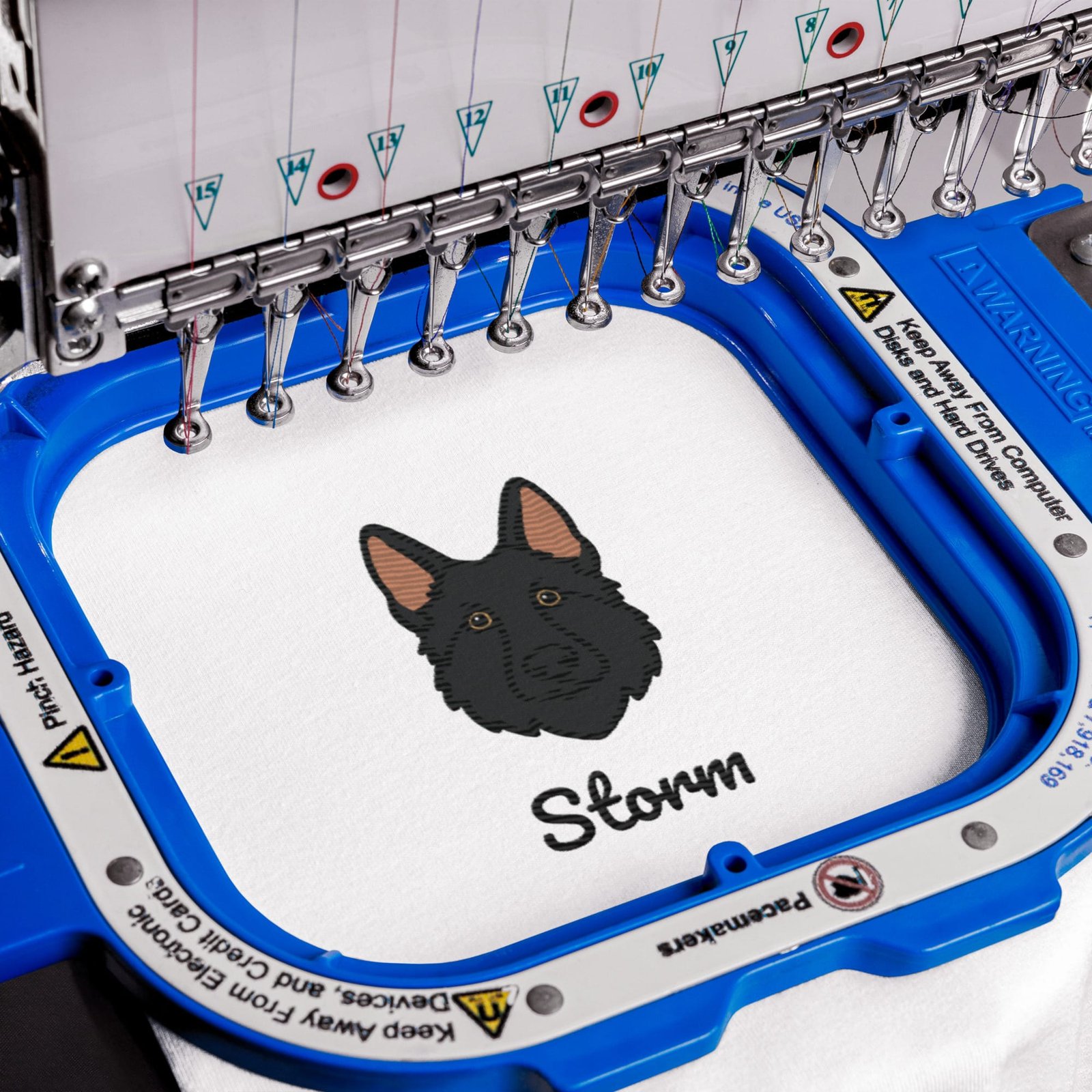 Le Berger Allemand est disponible en noir charbonné et en noir et feu. N’hésite pas à me contacter ici si tu veux une autre couleur sur ta broderie.